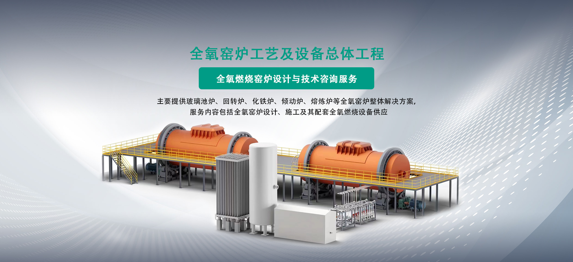 提供方案:成套熱能解決方案。高溫領域,采用全氧或富氧燃燒系統,包含全氧燃燒器、燃氣/氧氣管路系統以及自動化控制系統